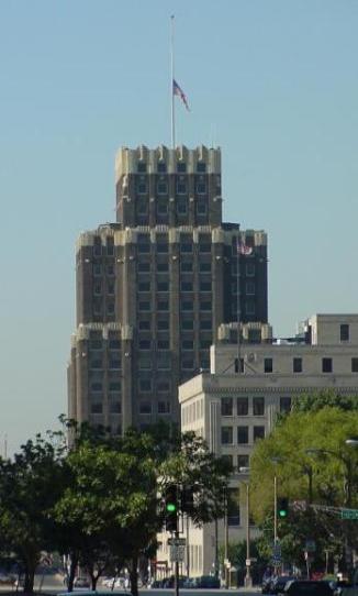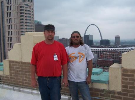 Painting flagpole at the Federal building St Louis