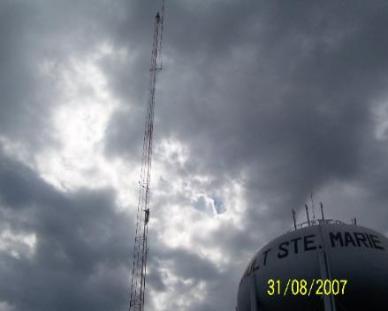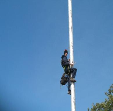 Painting flagpole tower at Michigan State Fair and Tower in Sault Ste Marie, Mi
